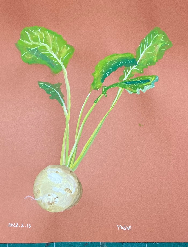 水彩画教室では三原色で色作りをするキミコ方式をベースに指導させて頂きます。描き方はとてもシンプルです。三原色と白で自分が見えた色を作り、画用紙に部分から描き始めて、となりへとなりへと描き広げてゆきます。「色と形を同時に描き進める」方法です。まず、輪郭線で形を描いてから色を塗る方法と違いますので、初めは戸惑うかもしれませんが、慣れてくると、描きたいと感じた気持ちと、見る事描く事がとっても自然にマッチしていると感じていただけると思います。